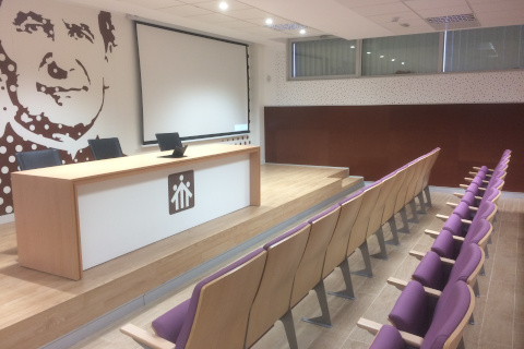 Salón amplio y espacioso para actos y conferencias. Aire acondicionado frio-calor.